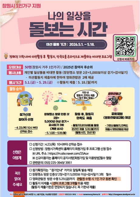 2026. 5월 창원시가족센터 프로그램 참가자 모집 안내
